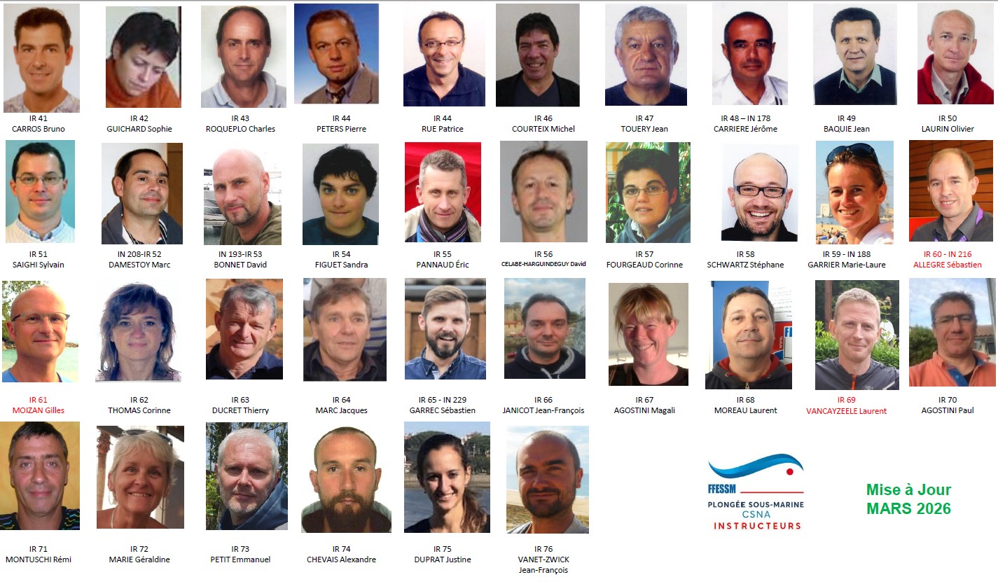 Le collège des instructeurs du CSNA est une entité conviviale, vivante et remplie de personnalités uniques ayant un point commun : la passion de la plongée sous-marine et l’envie de la partager. Au fil des années les générations d’instructeurs se succèdent pour continuer à former et à transmettre. Notre collègue Philippe Aizpurua a fait un travail d’archéologue moderne pour reconstituer depuis les origines tous les membres du collège.